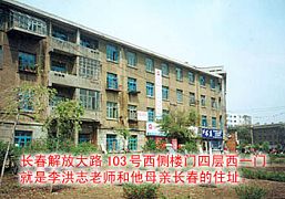 胜利公园的东北方不远是师父当年工作的地方——市粮油供应公司。凡是和师父一起工作过的人都知道,师父善良、质朴、实在,平时话语不多,总是笑呵呵的,人缘很好。谁要是哪不舒服,找到师父,师父都帮着调理调理,都说见好。逢年过节有活动,师父就把部队文工团的战友们找来给演出节目,师父吹小号。师父在工作中、生活中,用行动告诉我们怎样最大限度的符合常人状态来修炼。也是在这里,师父讲到自己早期修炼的事情,“我在单位上班的时候,单位食堂老亏损,后来就黄了。黄了大伙带饭。早晨做点菜,忙忙活活上班挺费劲。有的时候买两个馒头,买块豆腐泡酱油。按理说那么清淡的东西可以了吧,老吃也不行,也得给去去这个心。你刚要瞅豆腐,就让你泛酸,再吃吃不了,也怕你产生执著心。”(《转法轮》)长春市里有很多人曾是师父的同事、同学、战友、邻居,亲朋好友,都是师父为救他们而结下的缘,但愿他们都能知道大法好,不费师父苦心啊!“大法洪传,救度一切众生”(《大法弟子的正念是有威力的》),师父给过所有生命一次一次得救的机会,只看自己怎样选择了。