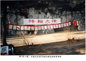记的当年师父在北京参加东方健康博览会的时候,这座住宅楼着了火。过后师父说到这件事情,当时有人告诉师父家着火了,师父右手绕到头的后侧,做了一个非常漂亮的动作,说:“着就着吧!”师父没管这件事。结果,火扑灭了之后,消防队员清理火场,一看只有师父家没烧着。当时人们说,这家是修佛的,家里供着佛像呢,有佛保佑。现在想想,那时旧势力就给师父传法制造方方面面的麻烦,但是正像师父讲的“我这个人不愿意跟人斗,我也犯不上跟他斗。他弄来不好的东西我就清理,清理完了,我就传我的法。”
