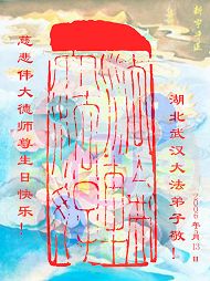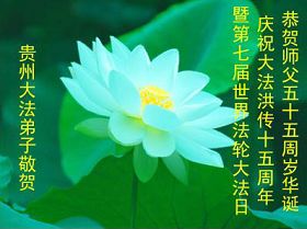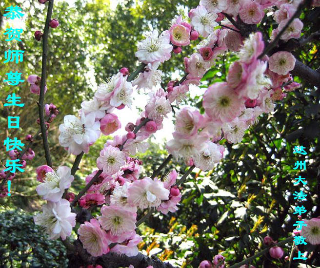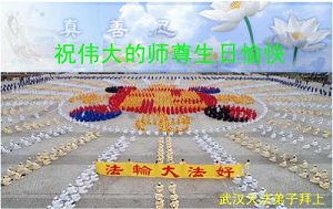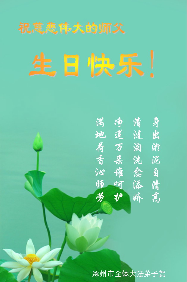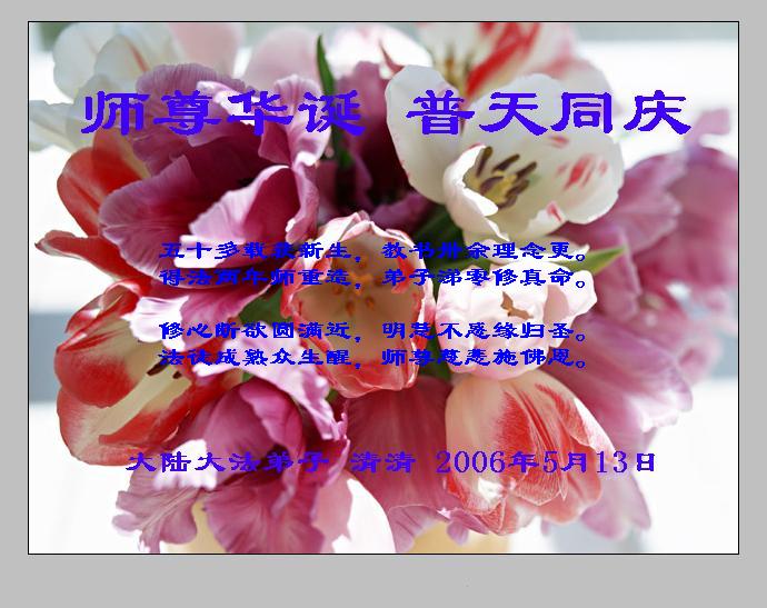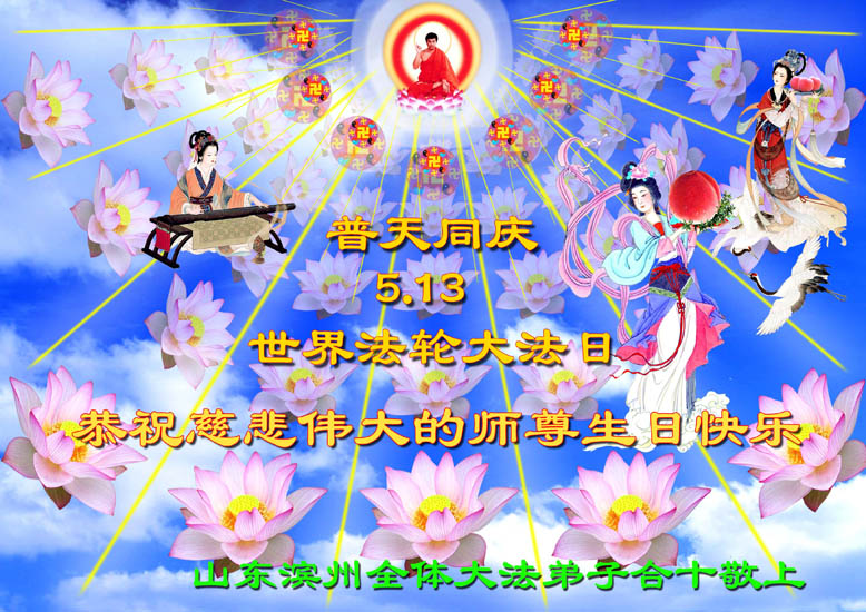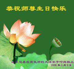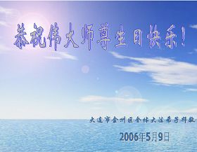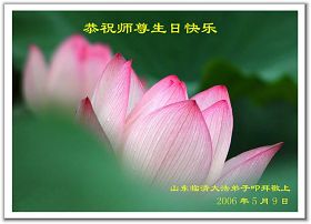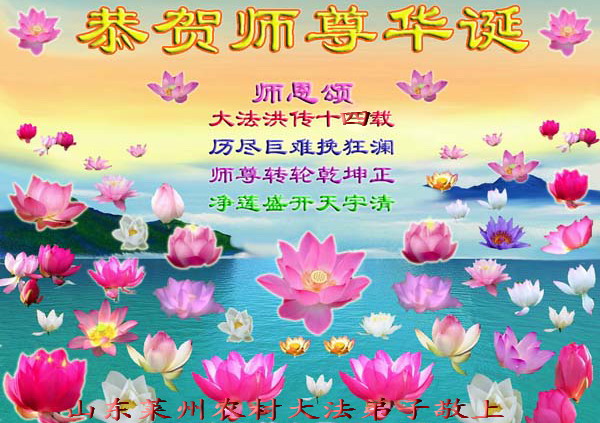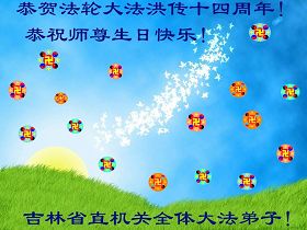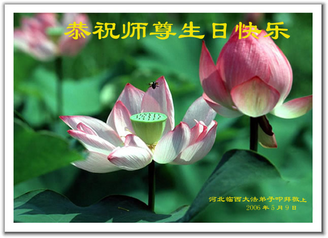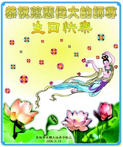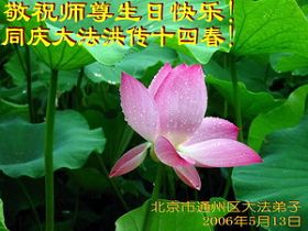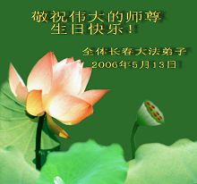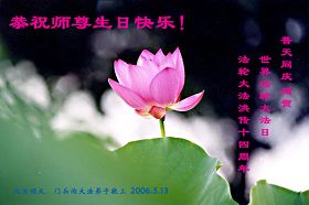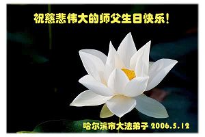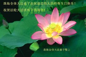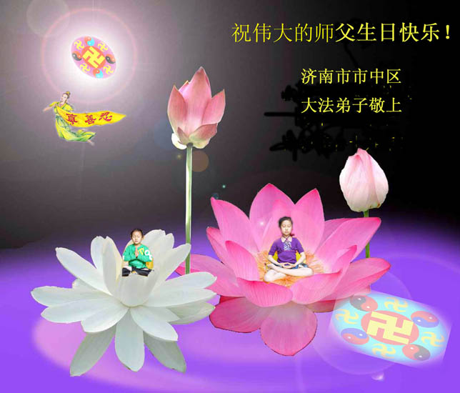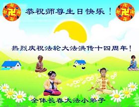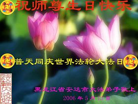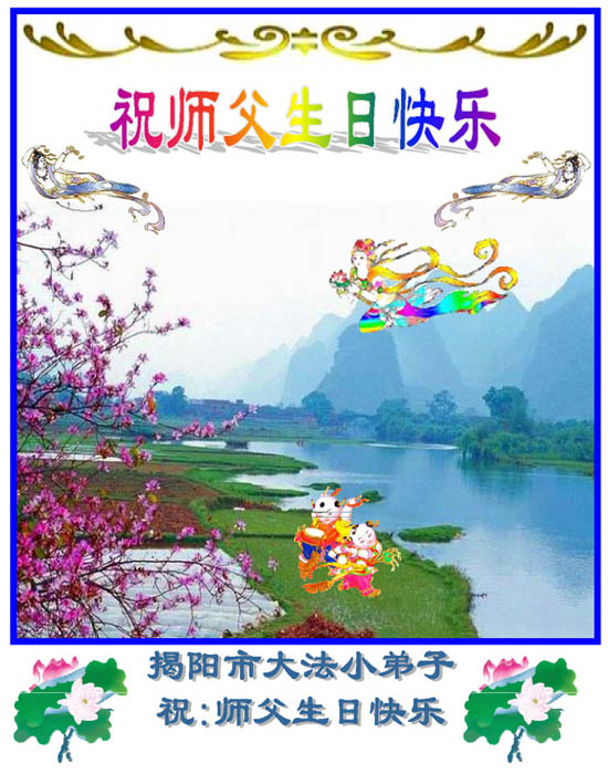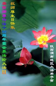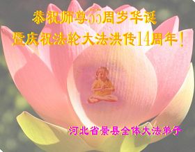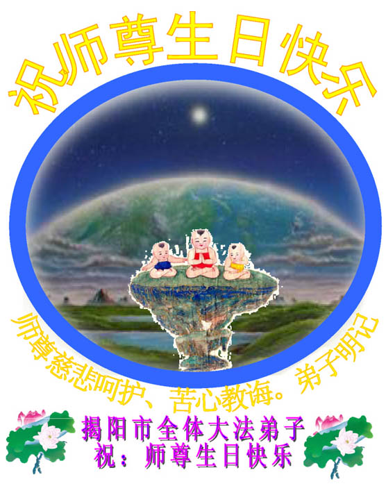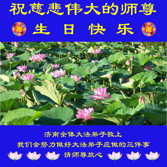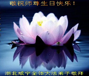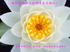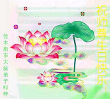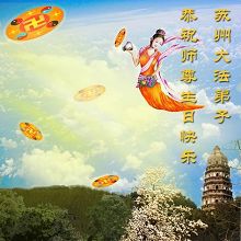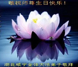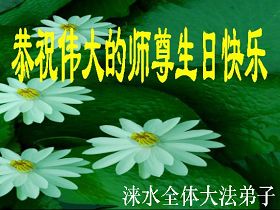 谨代表江苏淮安大法弟子向最慈悲伟大的师尊恭祝生日快乐!我们将努力做好三件事,救度更多的众生。