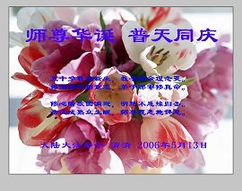 值此师尊华诞和世界法轮大法日之际,向慈悲伟大的师尊致以最诚挚的问候!