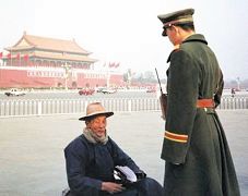 ![]() 美联社图片:步行到天安门广场为法轮功和平请愿的老人 |