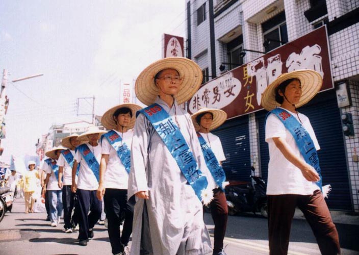 2002年7月20日,台湾云林县以南,含台东、澎湖各县市共约一千二百名法轮功学员在高雄市中正文化中心举行“正法之路图片展”、千人步行活动及烛光悼念会等系列讲清真相的活动。 翌年7月20日,台湾南部九县市学员再次齐聚高雄,与全球同步展开一场“声援全球公审江泽民”大游行活动,以使民众知道,对法轮功的迫害必须停止,发动迫害的首恶与帮凶都难逃法律公理的制裁。