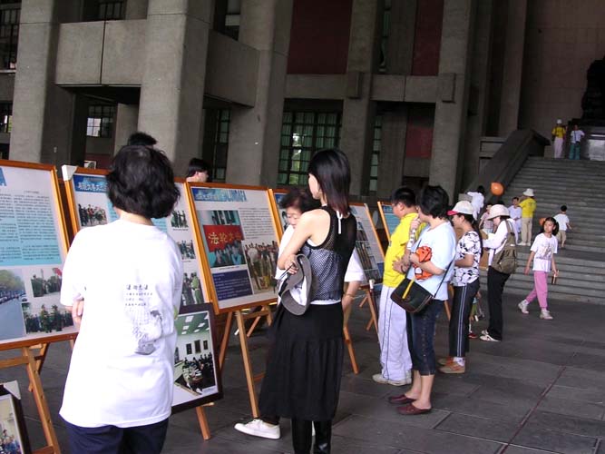 2002年7月20日在高雄市文化中心,举办两天的“法轮大法正法之路图片展”,共展出130幅图片,吸引许多民众观看,明白真相后的民众,热烈主动的频频向服务台索取简介及询问法轮功相关问题。展出内容有:自1992年法轮功在中国大陆传出,受人们喜爱及政府支持的历史见证;大法洪传世界;1999年起遭江泽民集团残酷迫害;全世界法轮功学员以和平理性方式,呼吁制止迫害;全球公审江泽民,多国起诉江泽民及不法官员等。井然有序的安排,使市民明白海峡对岸所发生的残酷虐杀是如此骇人听闻、匪夷所思。