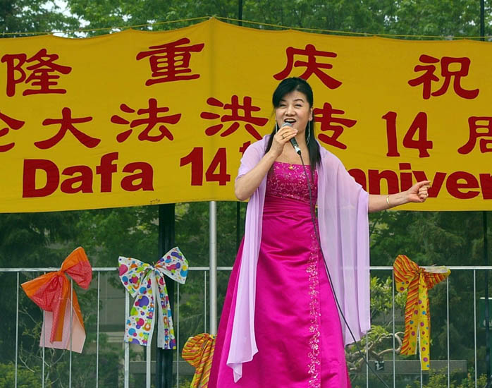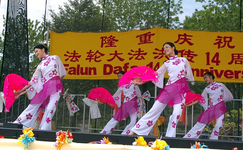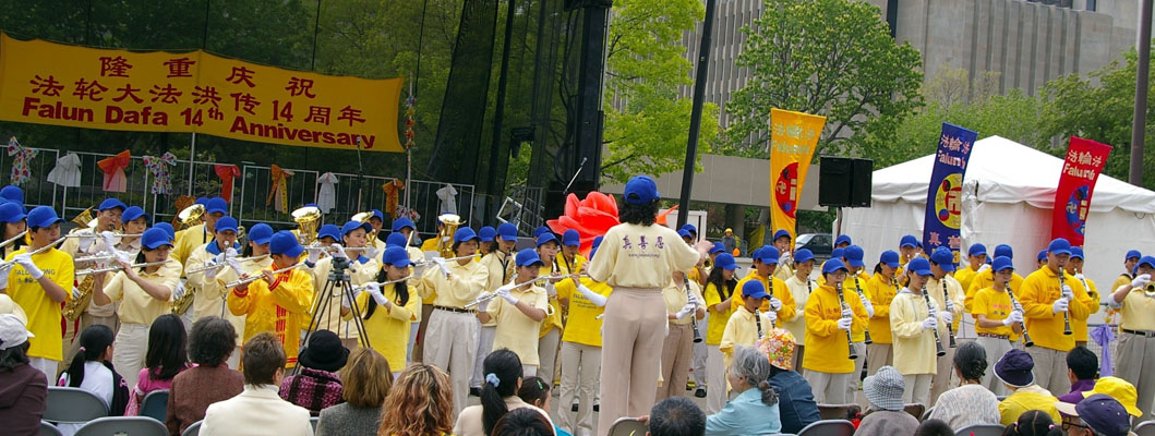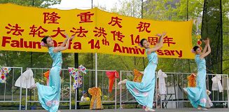 【明慧网2006年5月14日】(明慧记者叶灵辉报道)5月13日是世界法轮大法日。加拿大多伦多的法轮功学员与他们的朋友们一起,在市政厅前的尼顿•菲利普广场欢庆节日,庆祝大法洪传世界十四周年,并庆祝师父五十五华诞。