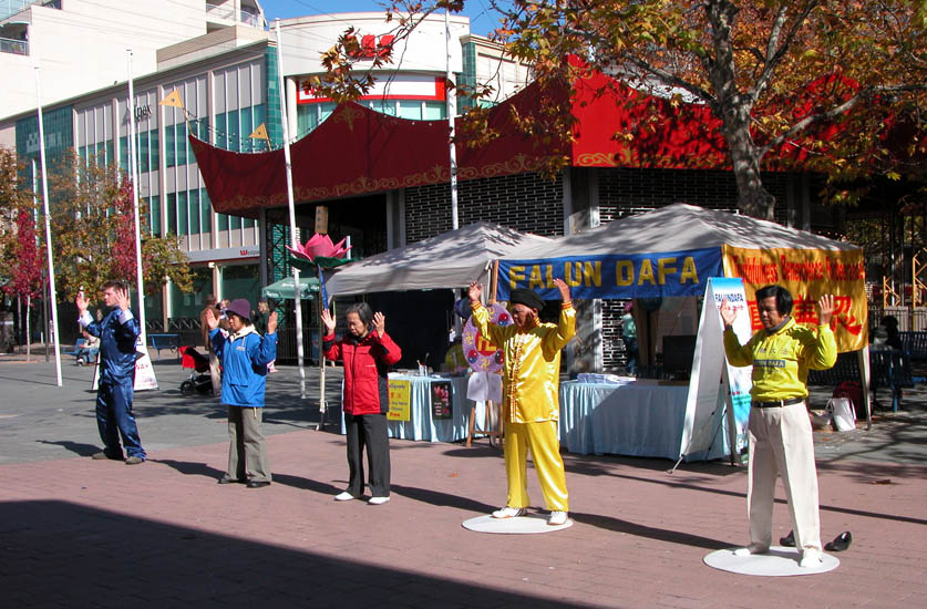 【明慧网2006年5月15日】为了庆祝第七届世界法轮大法日以及师尊华诞,澳洲堪培拉法轮大法学员在市中心举办为期两天的洪法活动,吸引了许多路过的市民前来了解法轮大法的美好。