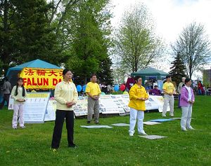 【明慧网2006年5月15日】2006年5月13日,加拿大凯基纳·滑铁卢地区法轮功学员举行了世界法轮大法日的庆祝活动,并应当地“非暴力日”活动组织者的邀请向民众介绍法轮大法洪传全球的盛况、及在中国大陆所遭受的