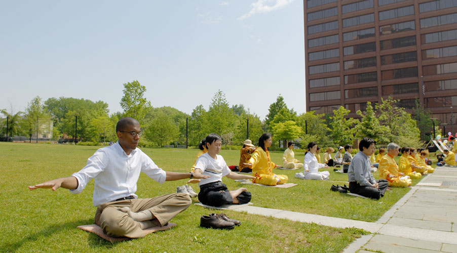 两百多年后,2006年5月13日,在费城自由钟前的草坪上,来自世界各地不同族裔和文化背景的人们,缓慢、平和的炼着一种源于东方中国、古老的身心修炼功法。他们所追求的,是人类精神的最高境界——“真善忍”。他们所宣告的,是家喻户晓、遍及全世界的高德大法。阳光下,他们静静的身影宣示着一个正在给人类带来光明和美好未来的福音:法轮大法!