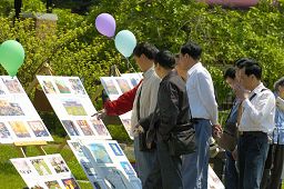![]() 许多大陆游客观看大法洪传世界图片展 |