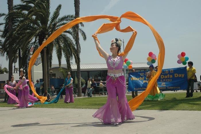 庆典的过程中,许多游客停下观赏,鼓掌喝彩,接下传单,纷纷签名反对中共迫害法轮功。