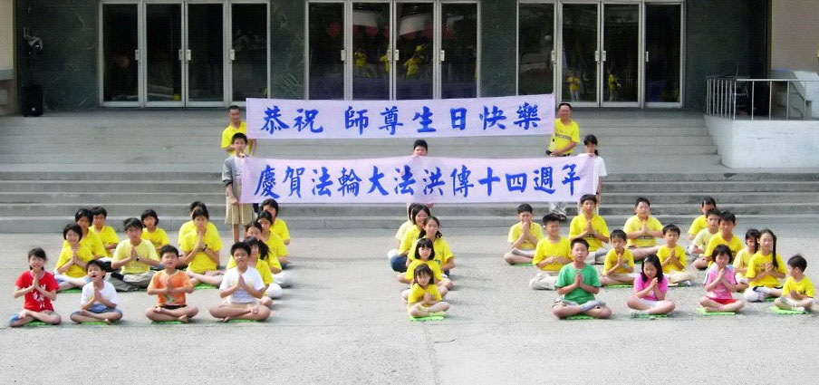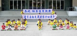 ![]() 5月13日小弟子在冈山农工欢庆世界法轮大法日 | ![]() 小弟子高呼“恭祝师尊生日快乐” |
