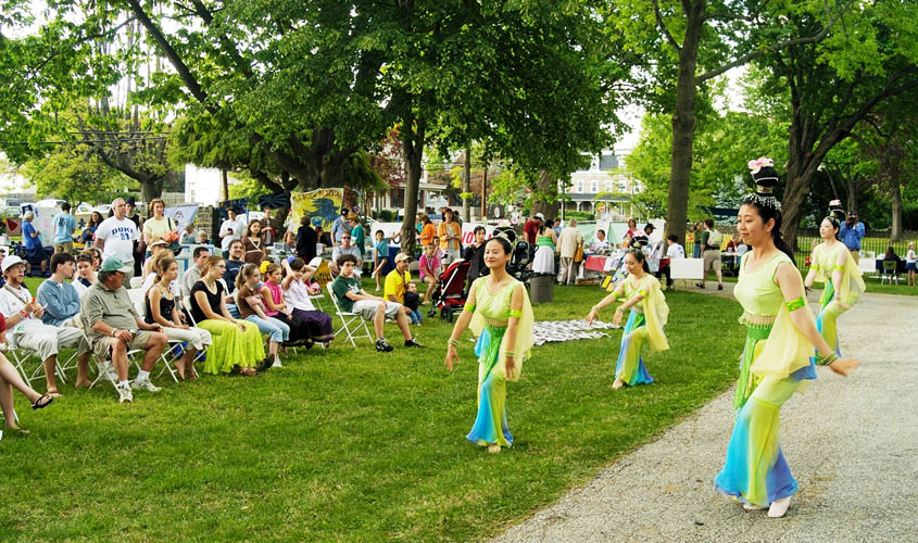 ![]() 法轮功学员在德拉华郡和平节上表演舞蹈 |