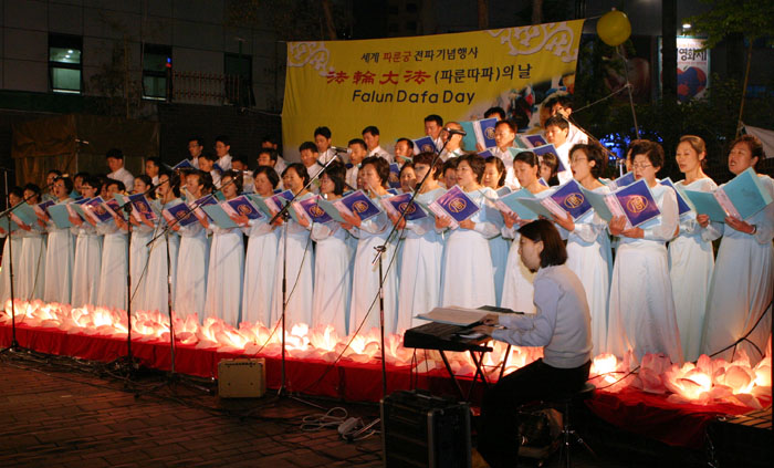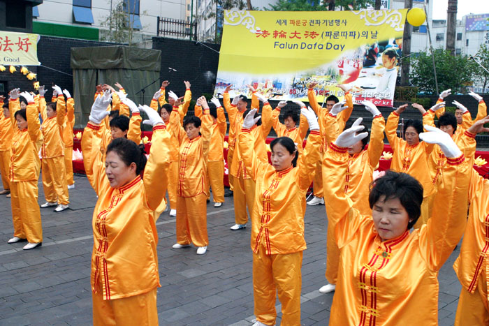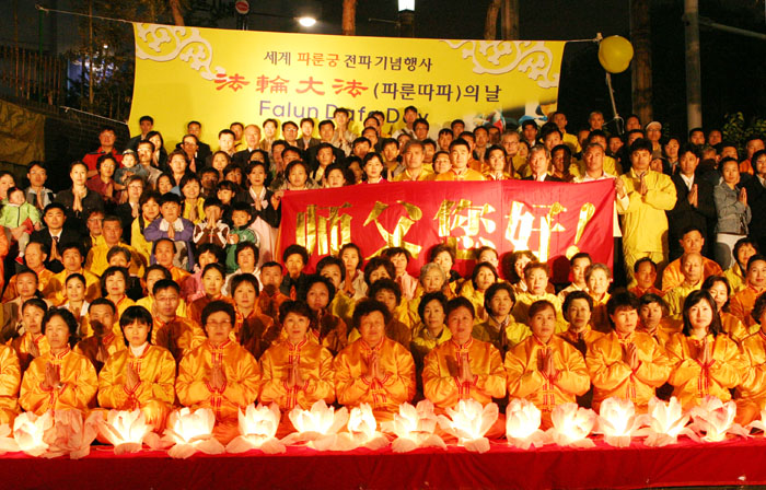 ![]() 韩国法轮功学员齐谢师恩 |