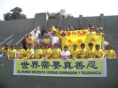 【明慧网2006年5月16日】2006年5月13日,秘鲁法轮功学员相聚在一起,庆祝大法洪传,感谢师尊救度,并祝师尊生日快乐。同时,学员们还以图片展的方式向民众