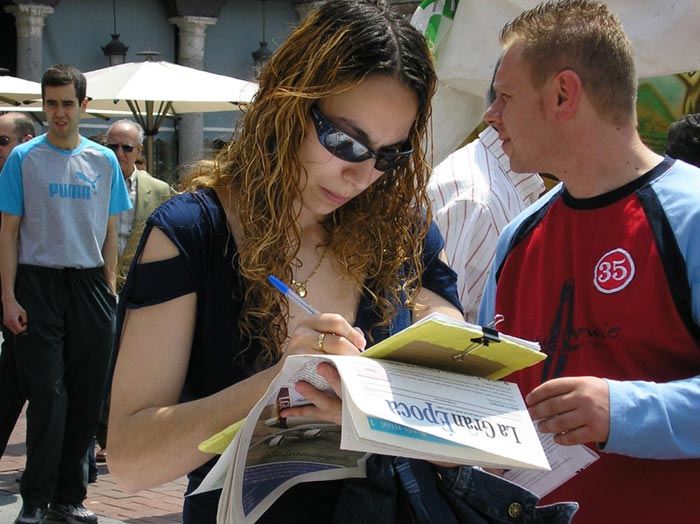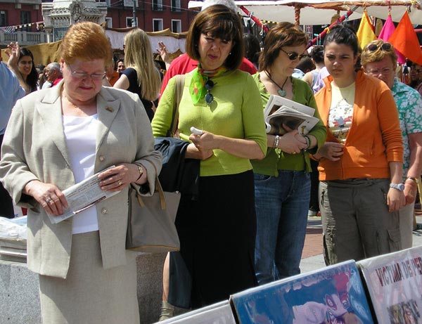 【明慧网2006年5月16日】2006年5月13日世界法轮大法日这天,西班牙各地法轮功学员们纷纷举办洪法活动,庆祝这个殊胜的节日。马德里的学员们巡回洪法来到西班牙古老的维亚多利城,一位维亚多利市民告诉学员说:“这一天,是我生命中最有意义的一天,我知道了法轮大法。当我知道了法轮大法的原则是真善忍,我兴奋不已,我知道这正是我一生都在寻找的真理。”