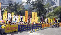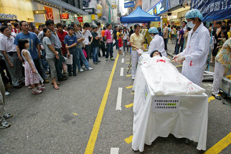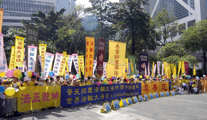 在隆重庆祝节日的同时,学员们不忘向民众讲真相,揭露发生在大陆的迫害,当天及翌日下午,分别在全香港最繁忙的两个地区──旺角和铜锣湾的街头举办反酷刑展,揭露中共活摘器官牟利的暴行及其它迫害真相。