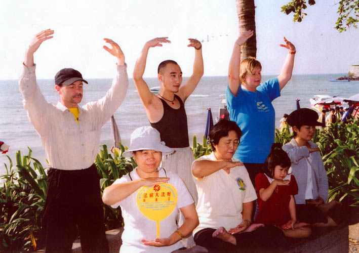 有的西方学员一出现消业情况,就不来了。为了避免这种情况发生,每期学习班都有老学员参加,每听完一讲都要讨论交流。当时,还曾组织西人学员到中国大连,与中国学员一起学习交流,体验中国学员是如何修炼的。
