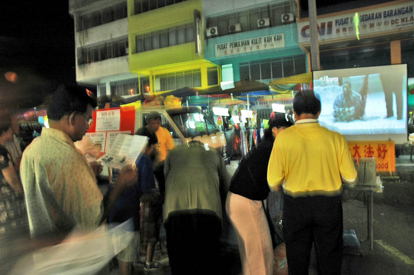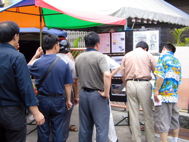 ![]() 在夜市用大荧幕播九评,发资料和征集签名。 |