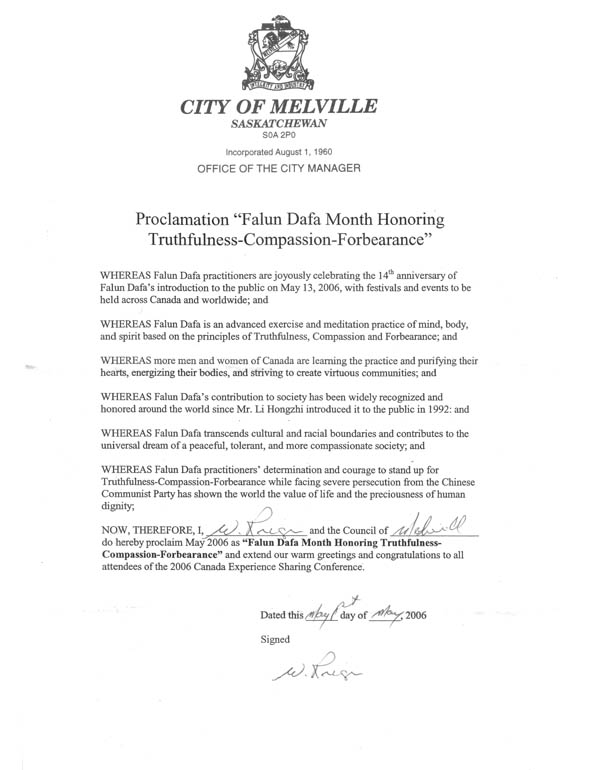 鉴此,我,维尔弗莱德•莱格(Wilfred Rieger),梅尔维尔市市长,和市议会宣布2006年5月为