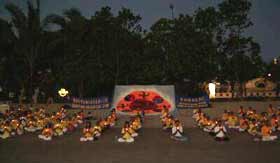 活动从当地时间下午四点开始,以集体炼功作为开端, 包括巴厘大法小弟子在内的大约120名学员参加了集体炼功。很多游客充满兴趣的见证着这个壮观场面。