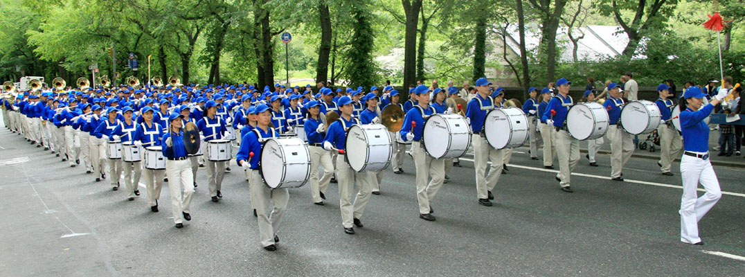 整个游行在5大道上沿着中央公园从61街走到86街,经过纽约著名的大都会艺术博物馆,跨越了曼哈顿上城一个环境幽雅的住宅区。初夏的周日中午,人们携家带口来到公园游玩,在路边散步,坐在博物馆前的台阶上休息。法轮功学员的队伍吸引了路人的热情关注。人们高兴的欣赏着学员的表演,纷纷拿出随身带的相机、摄影机拍照留念,向学员们竖大拇指。