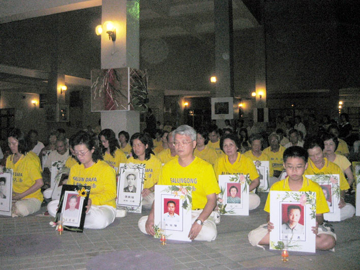 5月20日晚间一百多名法轮功学员齐聚斗六文化局举行烛光悼念会,在点点烛光下除了有天音合唱团的合唱外,并由口湖国中吴雁门校长代表全体法轮功学员朗诵悼念诗,斗六市第三区市民代表候选人林沛均亦到场致意。结束前播放法轮大法正法之路影片,希望借此呼吁世人关心中国大陆法轮功学员遭迫害的情况、制止中共盗卖活体器官的人权丑事。
