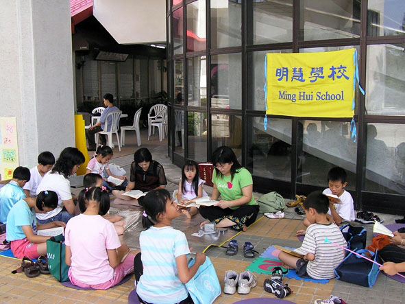 ![]() 云林明慧学校小弟子专注读法 | ![]() 云林明慧学校小弟子参观真善忍美展 |