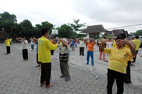 有位来自日惹的法轮功学员把法轮功介绍给难民们,自那时起,在哈科比囊温收容所每星期有三次学习法轮功。避难的人们因祸得福。