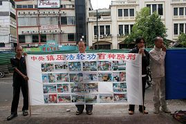 ![]() 揭露中共迫害法轮功的百种酷刑图片再现雅加达唐人街 | ![]() 民众围观中共以百种酷刑迫害法轮功的照片 |