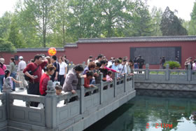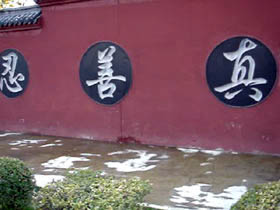 百脉泉公园位于山东济南市章丘明水境内,以泉水自然喷涌成湖而著称,其中以百脉泉、梅花泉、墨泉、龙泉最独具特色,享有“天下奇观”的美誉。龙泉寺为济南地区著名佛寺,始建于明景泰元年(1450年),坐落在百脉泉公园内,1996年修复时,在寺内西墙上1米左右的圆圈中雕刻了“精,气,神,真,善,忍”六个大字,更是吸引着海内外,省内外的大量游客,带动了济南章丘旅游业、经济产业的兴旺与发展。