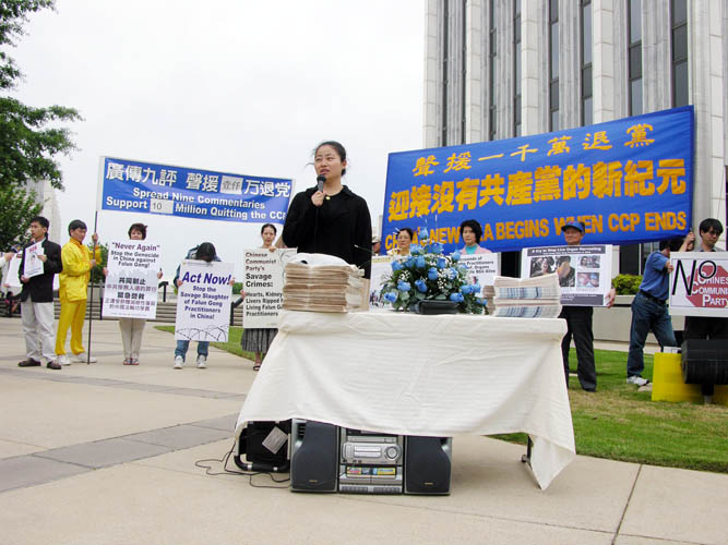 周雪菲在发言的最后表示:“去年10月,我们在田纳西州声援了500万退党,嗯,现在是4月份吧,半年时间,才6个月吧,一千万退党,明眼人都知道咋回事,不得人心的东西是不能长久的。 ”