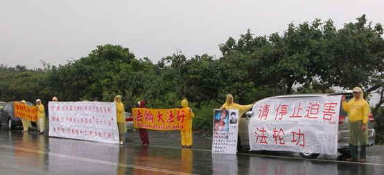 ![]() 屏东学员冒雨拉横幅、真相展板向大陆公安讲清真相 |