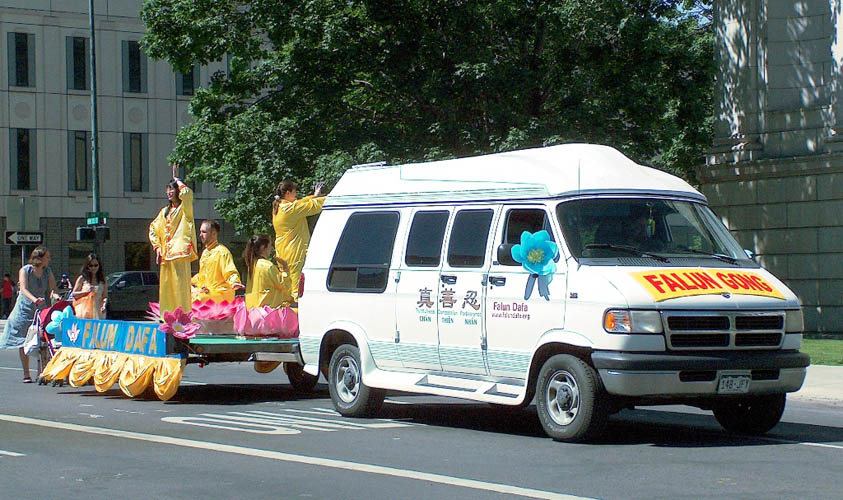 与以往游行不同的是,这次学员们把揭露“中共活体摘除法轮功学员人体器官”的真相资料夹在了介绍大法的传单里。学员们还准备了很多精美的纸叠莲花送给观众,非常受欢迎。这支与众不同的花车吸引了人们的注意,也得到了很多掌声和称赞。