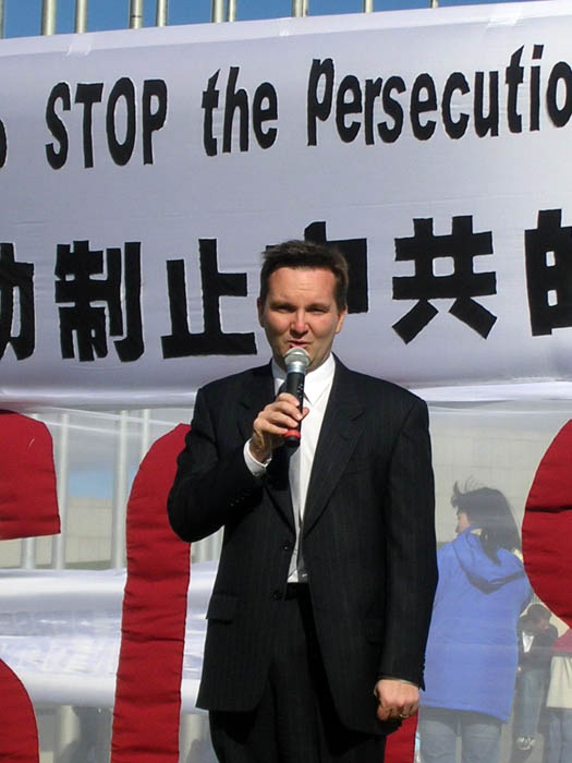 ![]() 联邦议员克里斯•伯恩在新闻发布会上支持法轮功 |