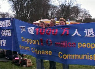 ![]() 法轮功学员向人们讲述迫害真相 |