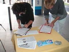 两个十岁的小学生在摊位上签名抗议中共暴行。过了不久又回到摊位,说她们想了一下觉的签名不够表达她们对中共活体摘取法轮功学员器官的愤怒,所以来问除了签名她们还能做什么?她们拿了许多资料,准备到学校去传达这个可怕的消息,让同学,老师了解中共的真面目。