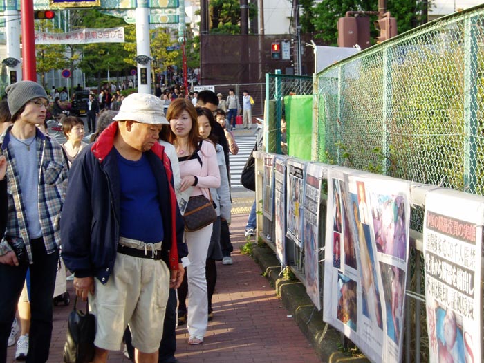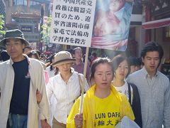 2006年5月3日至7日,横滨法轮功学员在“中华街”的入口处长几十米的栏杆上挂满了横幅:“法轮大法在世界洪传”、“法轮功学员被中共酷刑迫害”及“法轮功学员被中共活体摘取器官”等。
