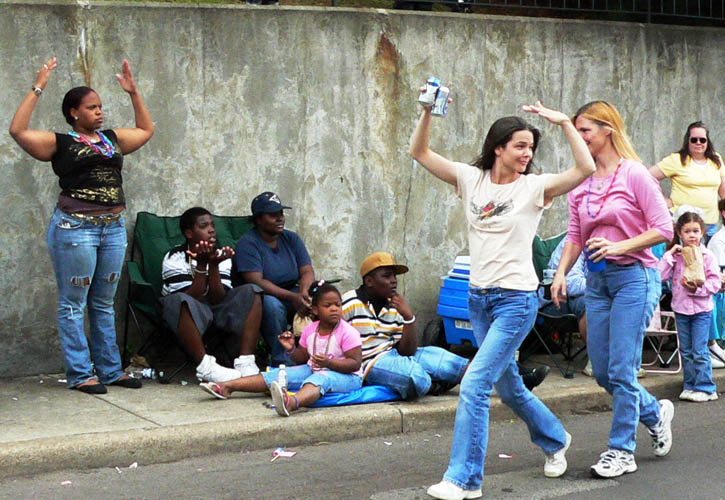 学员们手工制作的“法轮大法”横幅、以莲花和横幅装扮的造型清新雅致的花车、“缓、慢、圆”的法轮功功法演示、唐装舞蹈等等,使法轮功学员的队伍在一百多个团体构成的大游行中独具一格。除了报以热烈的掌声,很多人还模仿着花车上功法演示的动作,也有的观众特意跑到队伍中,向学员了解更多关于法轮功的信息。