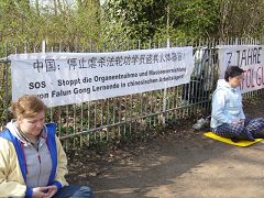 法轮功学员在汉堡中领馆前的抗议活动主要是抗议在中共集中营、监狱及劳教所中盗取法轮功学员器官的暴行。三条横幅引起了人们对在中国所发生的这种罪行的注意,在车水马龙的埃伯大道上的汽车司机们也能清楚的看到横幅。很多司机每天都要经过埃伯大道这条欧洲最长的街道,到汉堡去工作,他们以前就见过法轮功学员的抗议。许多人放慢了车速以读清横幅上的信息。