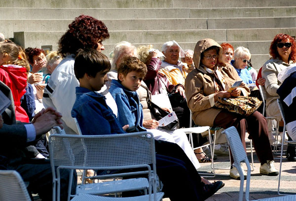 【明慧网2006年6月11日】(明慧记者叶灵辉报道)6月10日,为期2天的第5届俄罗斯传统文化节(RUSSIAN CAROUSEL 2006)在位于加拿大多伦多市北约克区的赖仕文广场(Mel Lastman Square)开幕。加拿大法轮功学员组成的多伦多天国乐团应邀到场演出,并向观众介绍法轮功。