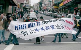 ![]() 呼吁制止中共法西斯暴行 | ![]() 中国城游行吁制止中共迫害 |