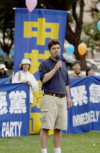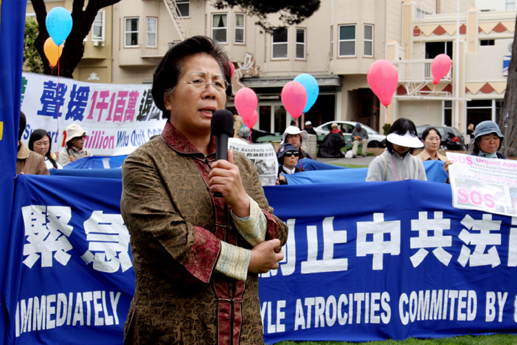 集会主持人、北加州退党服务中心代表马有志表示,自《九评共产党》于2004年11月发表以来,在大纪元退党网站上公开声明退出中共组织的人数已逾一千一百万,越来越多的人认清中共的邪恶本质,也让人们彻底抛弃对中共的幻想。尤其是最近揭露的中共活体摘取法轮功学员器官的暴行,人们认识到,中共的邪恶已经超出历史上任何极权政府所干的。而且中共还用欺骗手段掩盖他们的暴行。