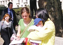 其中,许多人向学员问道“我能帮助你们做些什么?”一位英国女士在签完名后向学员问道:“我能做些什么?……这征签表能给两张吗?”过了两天,她拿回了那两张签名表,上面已签了满了名字。另一位中年西人女士一天里来来回回到真相点两三次,特意为告诉学员她所知的一位电视节目主持人的电话和联络方式,希望迫害真相在节目中播出以让更多的人知道。