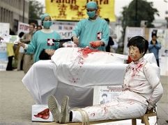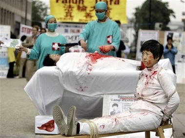 美联社的报导说,6月15日星期四,法轮功学员在布鲁塞尔欧盟大厦外,请求参加会议的欧盟首脑们,帮助他们反对(中共)非法摘取法轮功学员人体器官的行径。