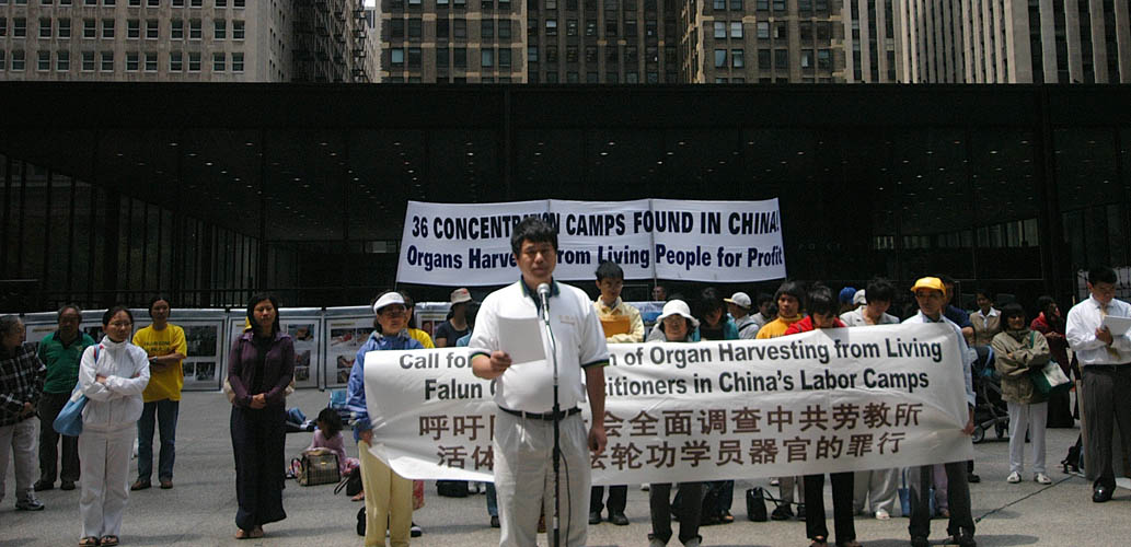 毕业于芝加哥大学的王文怡女士既是法轮功学员也是医生。面对这样紧急的情况,她曾在4月20日白宫欢迎胡锦涛的仪式上大声向布什和胡锦涛喊话。在今天的集会上,王文怡女士再度呼吁人们关注发生在中国的屠杀。