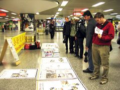 一位华人女士观看图片时,学员递送九评和真相资料给她,她欣然接受,接着学员给她讲天灭中共、退党保平安时,她请学员帮她退了曾入过的少先队。