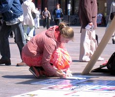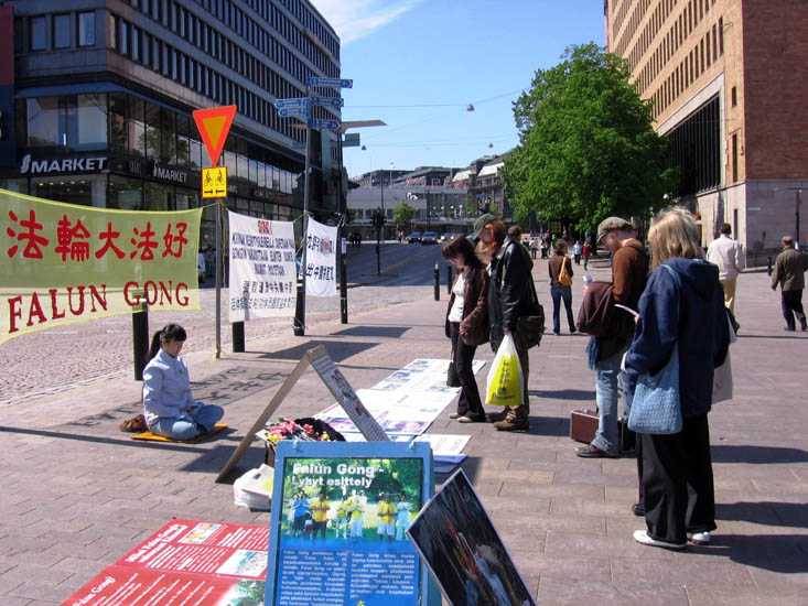 当一位学员递资料给一芬兰人时,他说他只信某某,不信这个。学员说:“我不是让你改变你的信仰,只是请你了解中共对信仰真善忍的法轮功学员的迫害真相。”这时旁边一位明白了真相的芬兰女士主动向他讲明学员的意图并劝说他了解真相。学员事后向这位女士表示真诚的谢意。