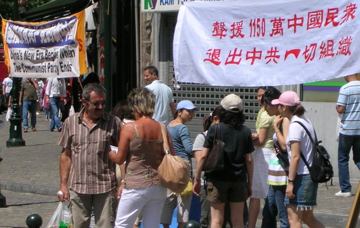 布鲁塞尔的中国城坐落在城市中心,部份法轮功学员带着《九评共产党》到著名的布鲁塞尔大广场(Grand-Place)向中国游客讲真相。学员Yve说,“九评”很受中国游客欢迎。他们还向附近的巧克力商店店主讲真相,希望他能将“九评”和法轮功真相资料放在店里,供前来购买巧克力的中国游客拿取。店主表示他已经从电视上了解了真相并同意学员的建议。