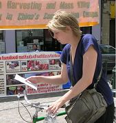 据参加活动的学员介绍,许多行人被迫害真相所震惊。一对年轻读者长时间的站在图片前观看,并向学员详细的询问迫害为什么发生?发生在哪些地方?什么是法轮功?等等许多问题。在听完学员解说后,他们认为这种迫害是不可接受的,两人要了真相资料后,道谢着离开。