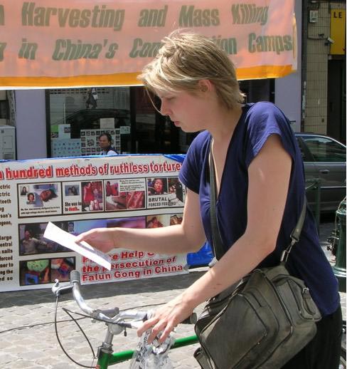 居住在比利时的中国人对此也十分关心,许多人主动寻找新的真相资料,有的向学员表达自己对中共的反感并声讨中共的恶行。一位中年人谈到,他很了解中共的恶行,相信对法轮功的迫害是真实发生的。他表示自己经常在网上跟贴,正面支持法轮功。拿了资料后,他从商店买了许多饮料送给法轮功学员,见学员忙于讲真相无法与他交谈,他就将饮料放在资料桌下离开了。