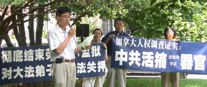 身为医生的法轮功学员庞玉滨在新闻发布会上说,“在今年四月中国器官移植中心的网站上,清清楚楚写着肾脏移植寻找供体只需两个星期,最长一个月。而在美国肾脏移植至少要等2年到7年。这意味着在中国存在着一个庞大的活体器官库。”